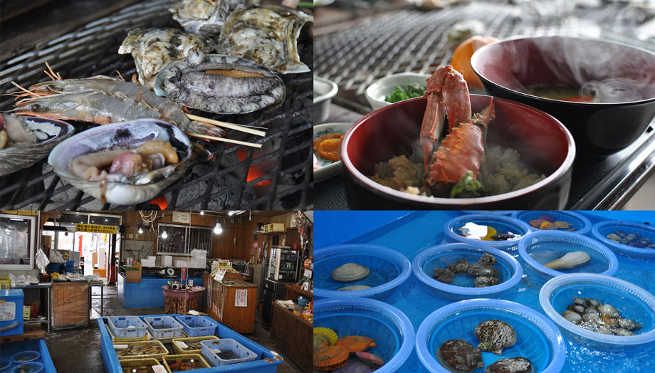 牡蠣は一かご1,000円 生け簀の貝、エビは生け簀に価格を表示していますのでお好きな物をお取りください。